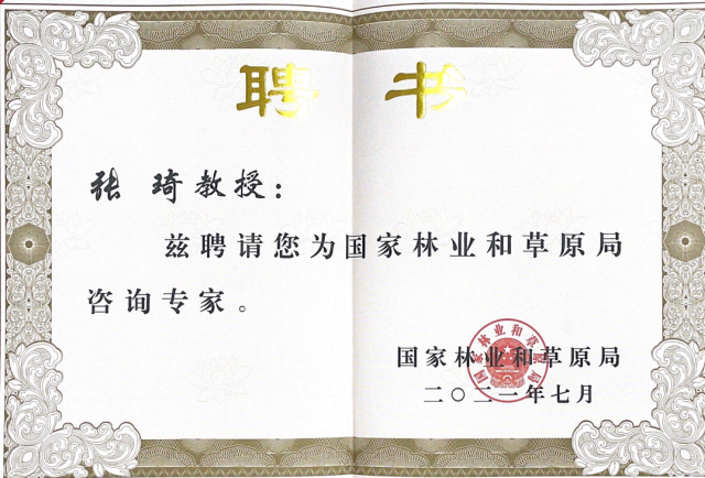 近日,从国家林业和草原局获悉,我院张琦教授受聘为国家林业和草原局咨询专家。
