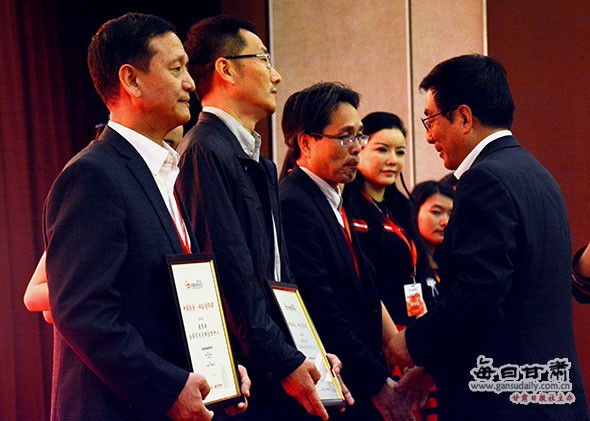 十一届全国人大常委会副委员长周铁农人民日报副社长张建星、甘肃省委副书记、省长林铎向获奖者颁奖.