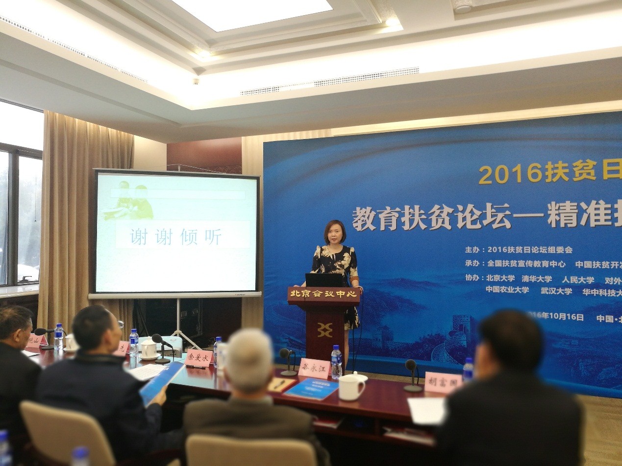 中心徐静慧在2016年扶贫日“教育扶贫论坛”演讲