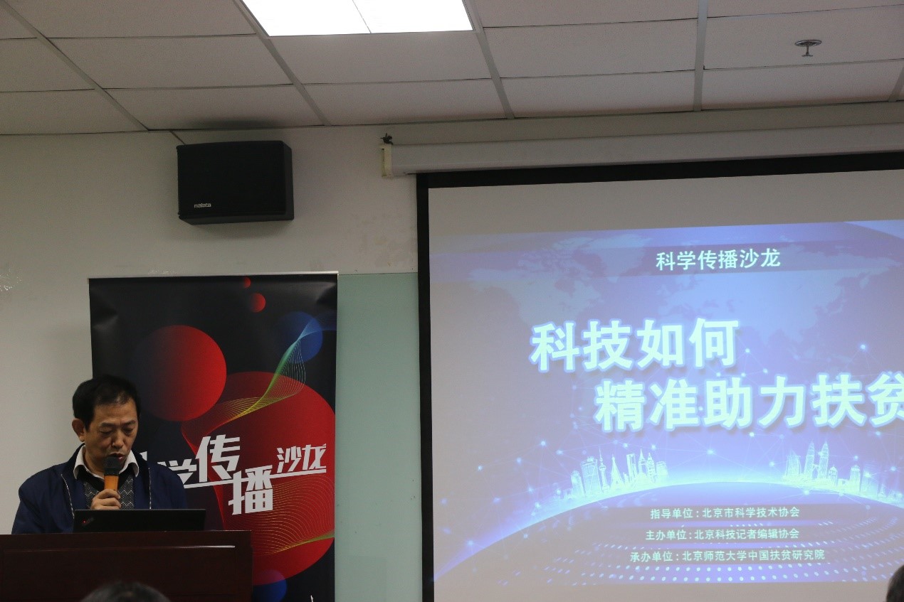11月19日,“科技如何精准助力扶贫”科学传播沙龙会在北京师范大学后主楼1726励志讲堂举行,该活动由北京市科学技术协会指导,北京科技记者编辑协会主办,由北京师范大学中国扶贫研究院承办。