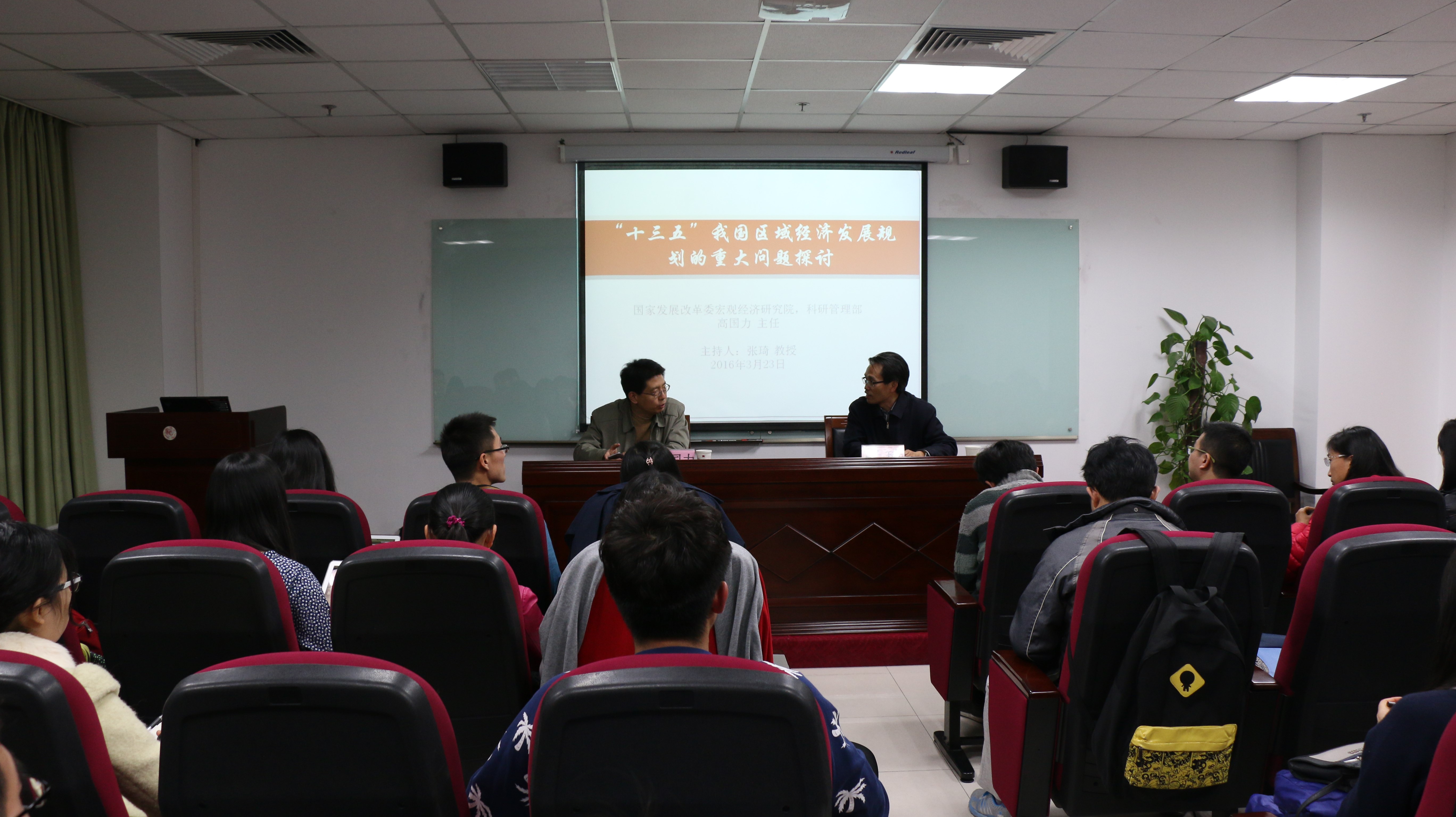 2016年3月23日,国家发改委宏观经济研究院科研管理部高国力主任为全院师生做了题为“‘十三五’期间我国区域经济发展规划的重大问题”专题讲座。我院师生和校内其他院系学生参加了本次讲座,讲座由张琦教授主持。