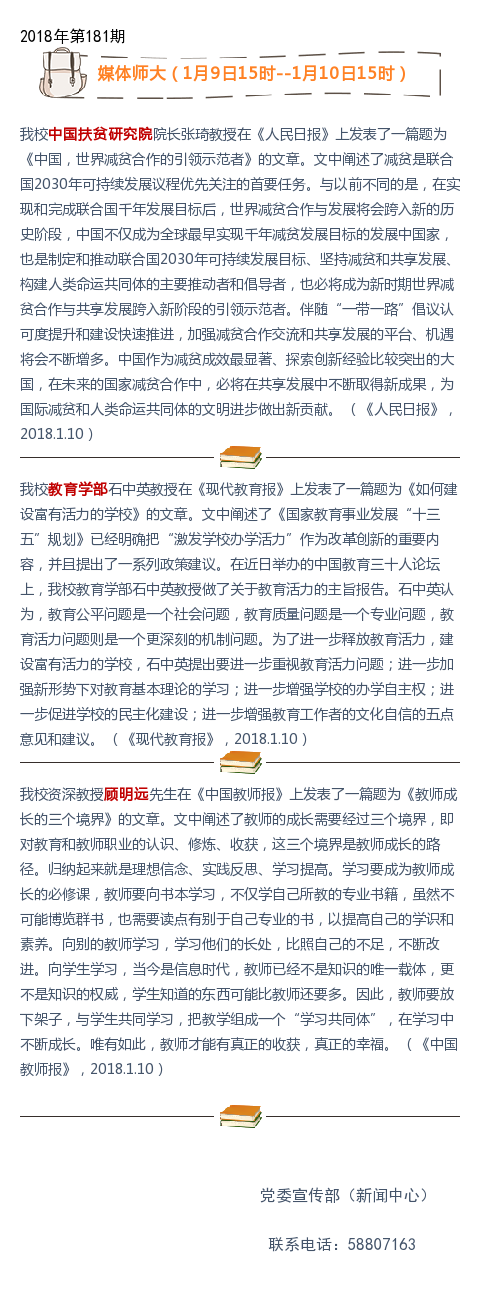 媒体师大:我校中国扶贫研究院院长在《人民日报》发表《中国,世界减贫合作的引领示范者(观点)》文章