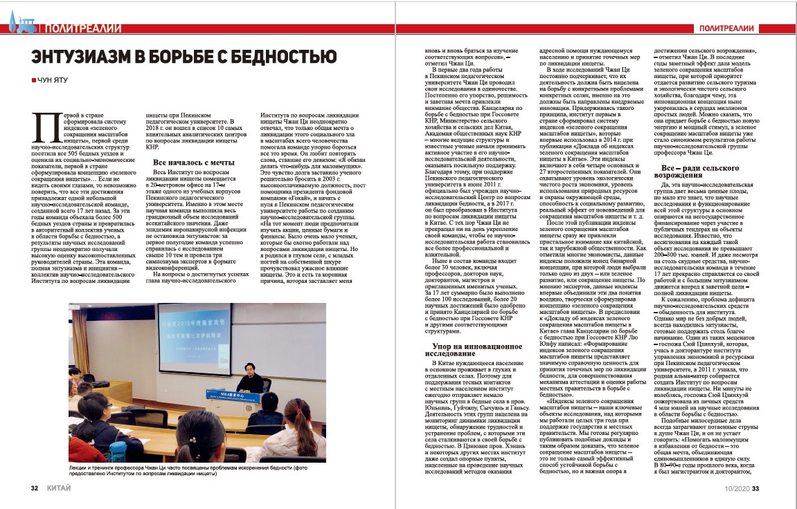 近日,我院张琦教授受中国外交局人民画报社俄文(中国)杂志采访。张琦教授以“决战决胜脱贫攻坚”为主题与记者交流。稿件已在俄文杂志刊登,并在俄罗斯地区发行。