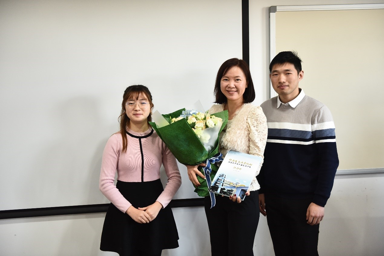 获奖学生代表向徐静慧女士赠送鲜花和纪念册
