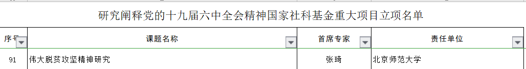 经全国哲学社会科学工作领导小组批准,国家社会科学基金围绕深入研究阐释党的十九届六中全会精神,列出一批重大项目选题。经个人申请、专家评审等环节,我院张琦教授喜获十九届六中全会精神国家社科重大项目《伟大脱贫攻坚精神研究》立项公示。