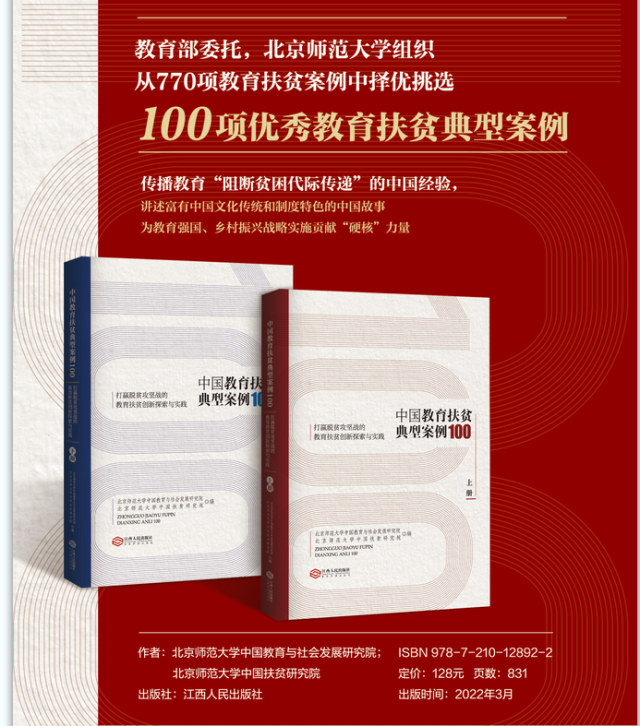 受教育部委托,北京师范大学组织实施了全国教育扶贫典型案例征集评选活动,累计收到770项教育扶贫案例。经省教育厅推荐和专家委员会评审,235项获评“全国教育扶贫典型案例”,在此基础上,经评选,将100项汇编成《中国教育扶贫典型案例100》。